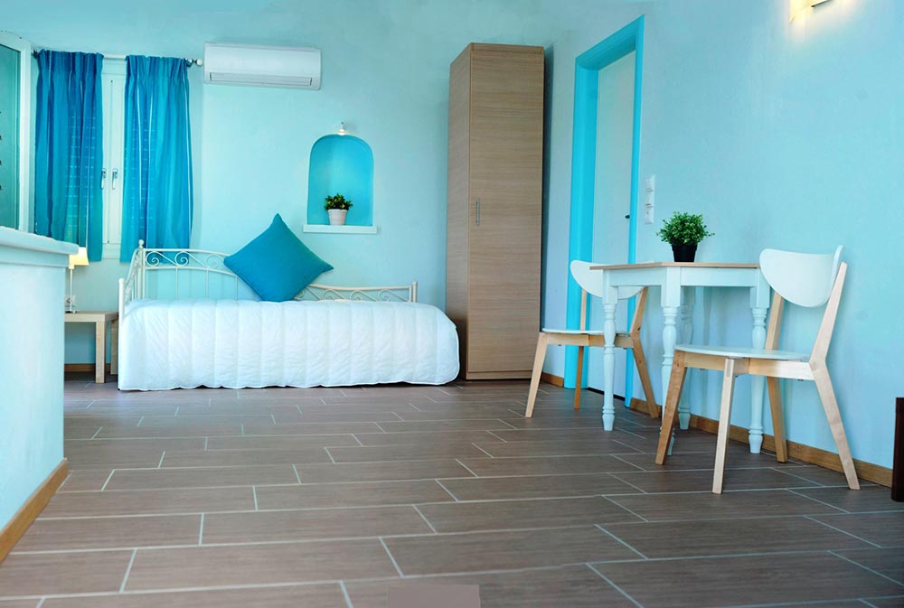 The maisonettes consist of a bedroom with a double bed and small terrace, television, sitting area, fully equipped kitchen, terrace with panoramic views to Ano Petali, Apollonia and Profitis Elias.